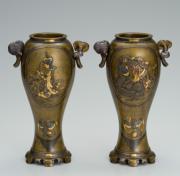 | 明治時代 真鍮、金、赤銅、彫金、象嵌 一対 (各)27.0×16.0×11.5 |