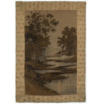 | Yuzen-dyed Velvet with Landscape with a Water Mill |