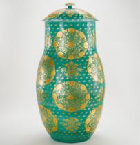 | 萌黄金襴手菊文蓋付大飾壺 |