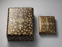 | 明治時代 漆、蒔絵、螺鈿・1 (硯箱) h6.5 w21.0 d25.2 (料紙箱) h14.7 w32.3 d41.5 |