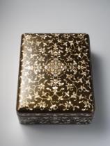 | A set of a stationery box and an inkstone case, flecked texture with arabesque pattern, maki-e and mother-of-pearl inlay |