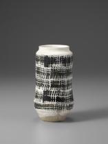 | Vase, cloth pattern in black glaze on white |