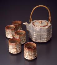 昭和60年 陶器・急須, 茶碗・6 土瓶: h14.0 D15.1 ; 湯呑: h7.5 D7.0