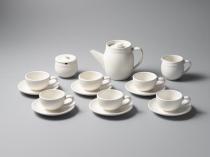 | 1965 porcelain cup:h5.3 w11.7 d9.1 ; saucer: h2.4 D15.0 ; pot:h13.4 w20.4 d11.8 ; sugar pot: h8.2 D8.9 ; milk pitcher: h8.5 w11.7 d8.8 |