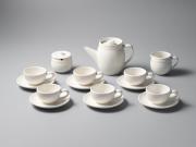 | 昭和40年 磁器・ポット, 茶碗・15 カップ:h5.3 w11.7 d9.1 ; ソーサ: h2.4 D15.0 ; ポット:h13.4 w20.4 d11.8 ; シュガーポット: h8.2 D8.9 ; ミルクピッチャー: h8.5 w11.7 d8.8 |