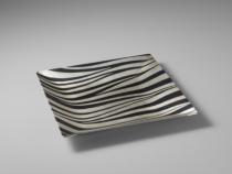 | Plate, joined and hammered silver and shakudo strips |