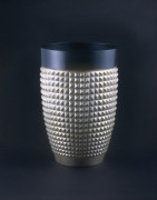 | Vase, shakudo and silver hammered in a fish-scale pattern, shakudo and silver |