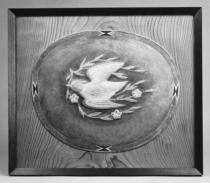 | Panel with the motif of a bird carrying a sprig of flowering plant |