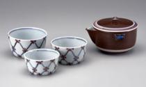 | Traveling tea set, underglaze blue and overglaze enamels |
