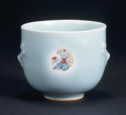 青磁豆彩茶碗 インド少女文